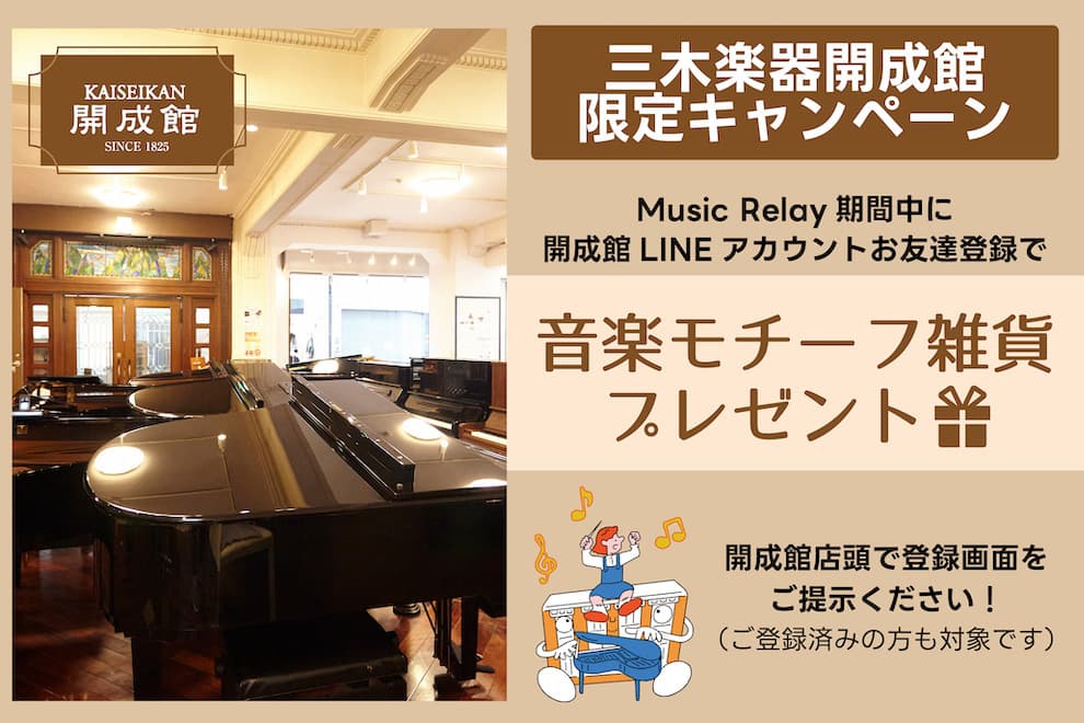 《開成館ピアノショップ》では、開催中にLINEアカウントお友達登録をしていただいた方に、音楽モチーフの雑貨をプレゼント!