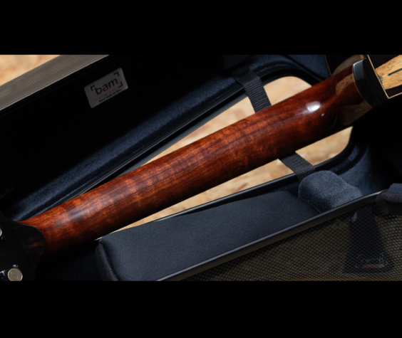 ネックには一般的なマホガニー系材ではなく、堅牢で音の輪郭を明瞭に引き立てるグラナディロを採用。仕上げにはフレンチポリッシュを施し、薄い塗膜が木材本来の響きを解放。経年変化とともに味わいを増す伝統的な塗装です。