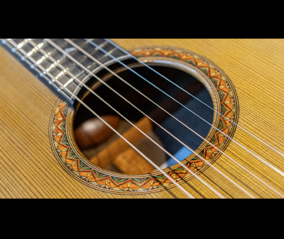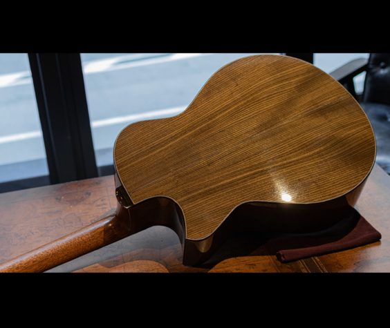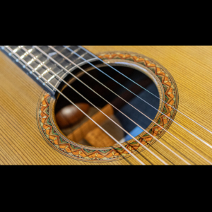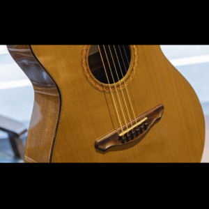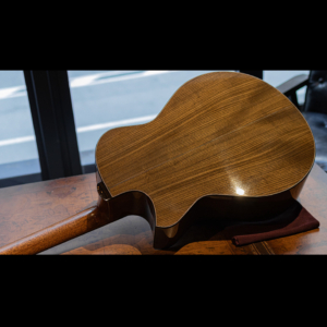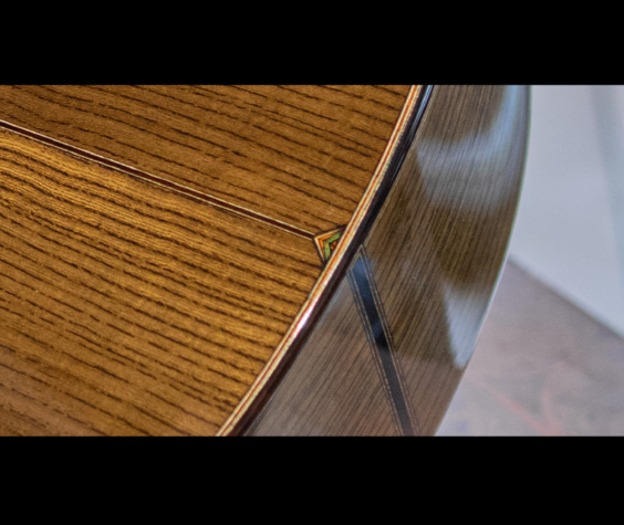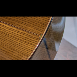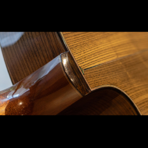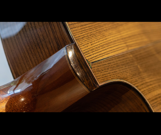 ネックの肉付きは少し抑えられ握り心地の良いシェイプ。正確で完璧なフレットワークは、藤井氏の得意とするところで、音響性だけでなく高い演奏性も持ち合わせています。組み上げのほとんどの箇所にニカワを使用しており、楽器全体の一体感、伝達の良さはまさに高次元。セラック仕上げですが過度にピーキーなレスポンスでなく、ギタリストが弾きやすい表現力の高さを兼ね備えています。