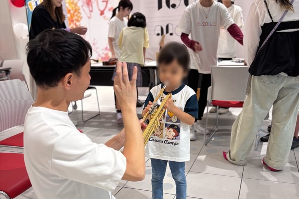 「子どもに楽器体験に挑戦してほしい!」というご家族が多く来られ、楽器体験コーナーは終始賑わいました!トランペットやフルート・バイオリン・パーカッションなど、“音を鳴らす”ことを楽しんでいただきました。お子様と楽器との出会いの場になっていれば嬉しいです!(画像6〜8枚目)