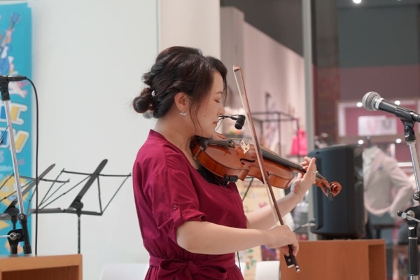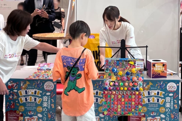 MIKIミュージックサロンによる《MIKIミュージックマルシェ》では「大人も子どもも一緒に楽しめる音楽マルシェ」として、MIKIミュージックサロン講師によるライブステージ・その場で気軽に参加いただける楽器体験コーナー・お子さま向けの縁日コーナー・音楽雑貨のポップアップショップを行いました。