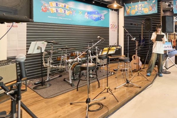 アメリカ村店では3月にリニューアルした店内ステージ(画像1枚目)を利用して、FM802が主催するサーキット型ライブイベント「MINAMI WHEEL 2025」とのコラボレーションイベント『FM802 MINAMI WHEEL 2025 JAM STAGE -MIKIGAKKI EDITION- at アメリカ村店』を開催しました。