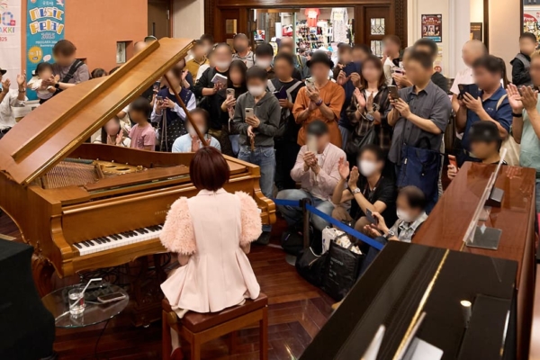 初めて三木楽器のイベントにご出演くださった松尾優さん。イベントは2ステージ開催。いずれの部も松尾さんのステージを楽しみに、大勢のお客様にお越しいただきました。
