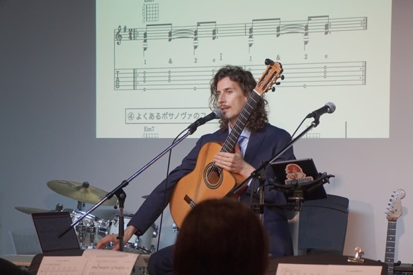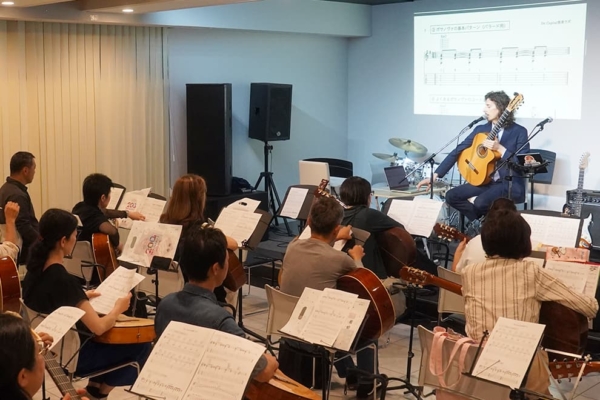 前半の特別レッスンはギター初心者〜経験者の方まで、お客さま全員にご参加いただきました。