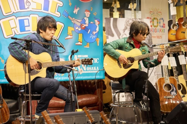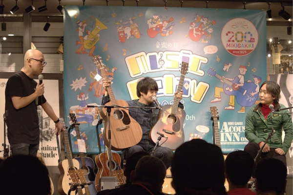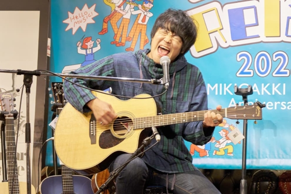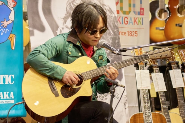 “Martin Guitas”サポートのもと、前編・後編スタイルで開催。前編ではSAHAJiさんのインストアライブを行いました。後編は黒澤楽器のご担当の藤田氏と共にマーチンギターのシリーズごとの違いなどを紹介頂き、そのギターをSAHAJiさんに弾いて頂き感想などをお話して頂きました。